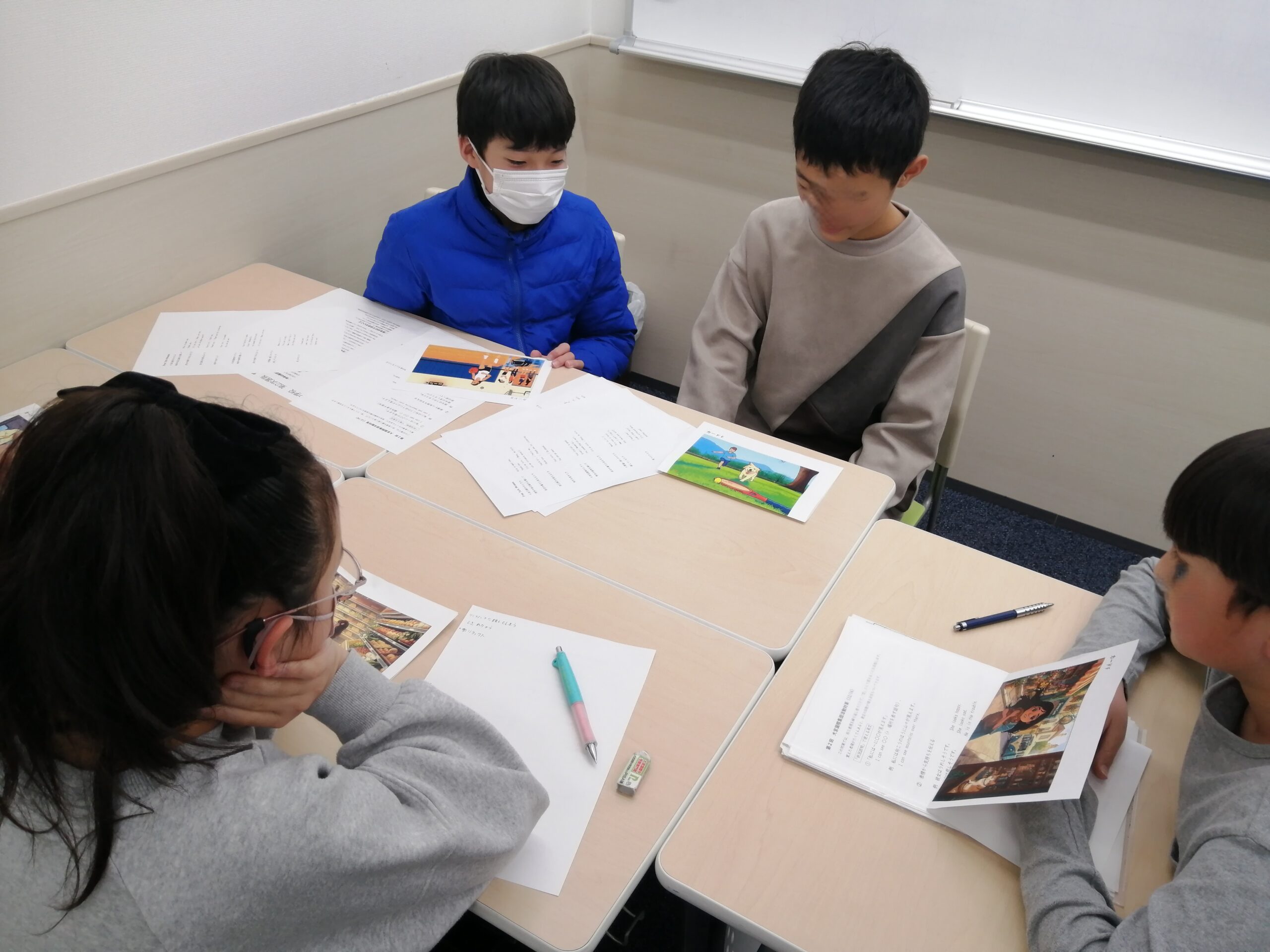 イラストの状況を英語で説明したり、みんなで間違い探しをして盛り上がったり