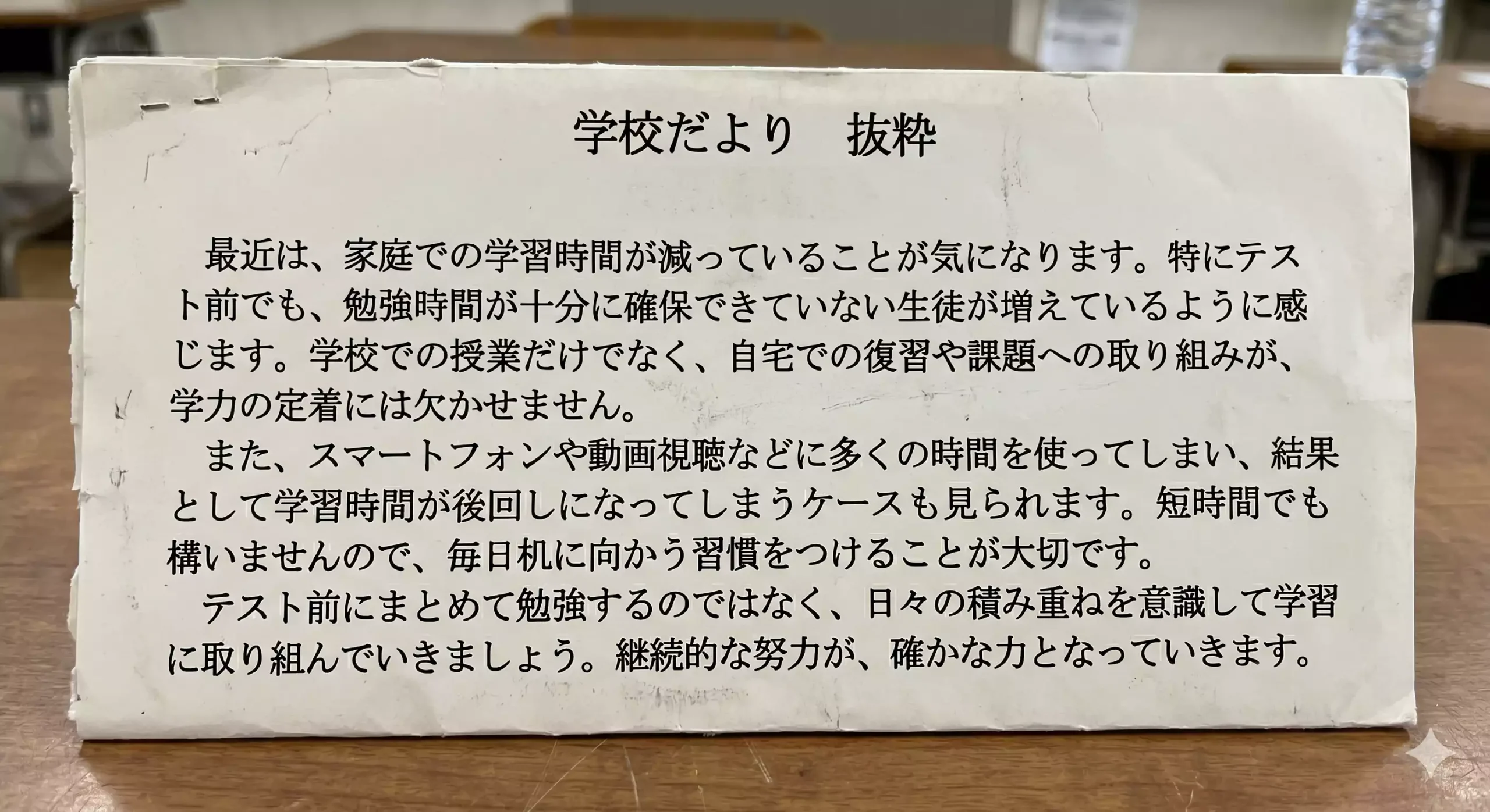 資料Bでは、はっきりと「家庭での学習時間が減っている」と書かれています。