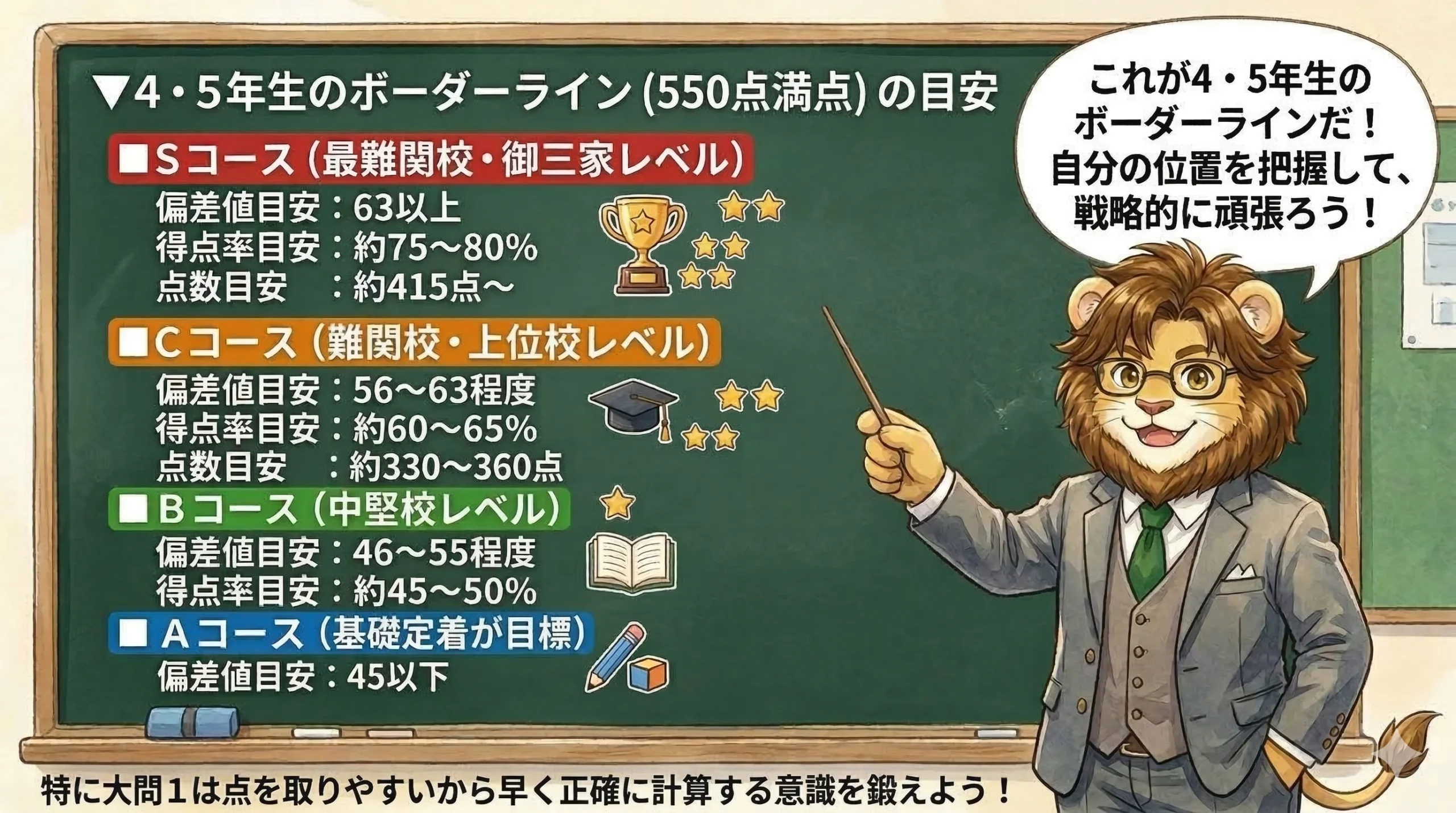 ▼4・5年生のボーダーライン(550点満点)の目安