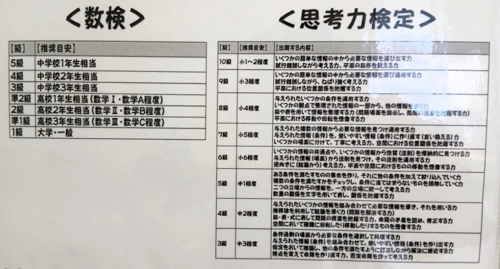 下に、<✍英検と漢検>と<📐数検と思考力検定>の受験級のめやすを添付いたします。
