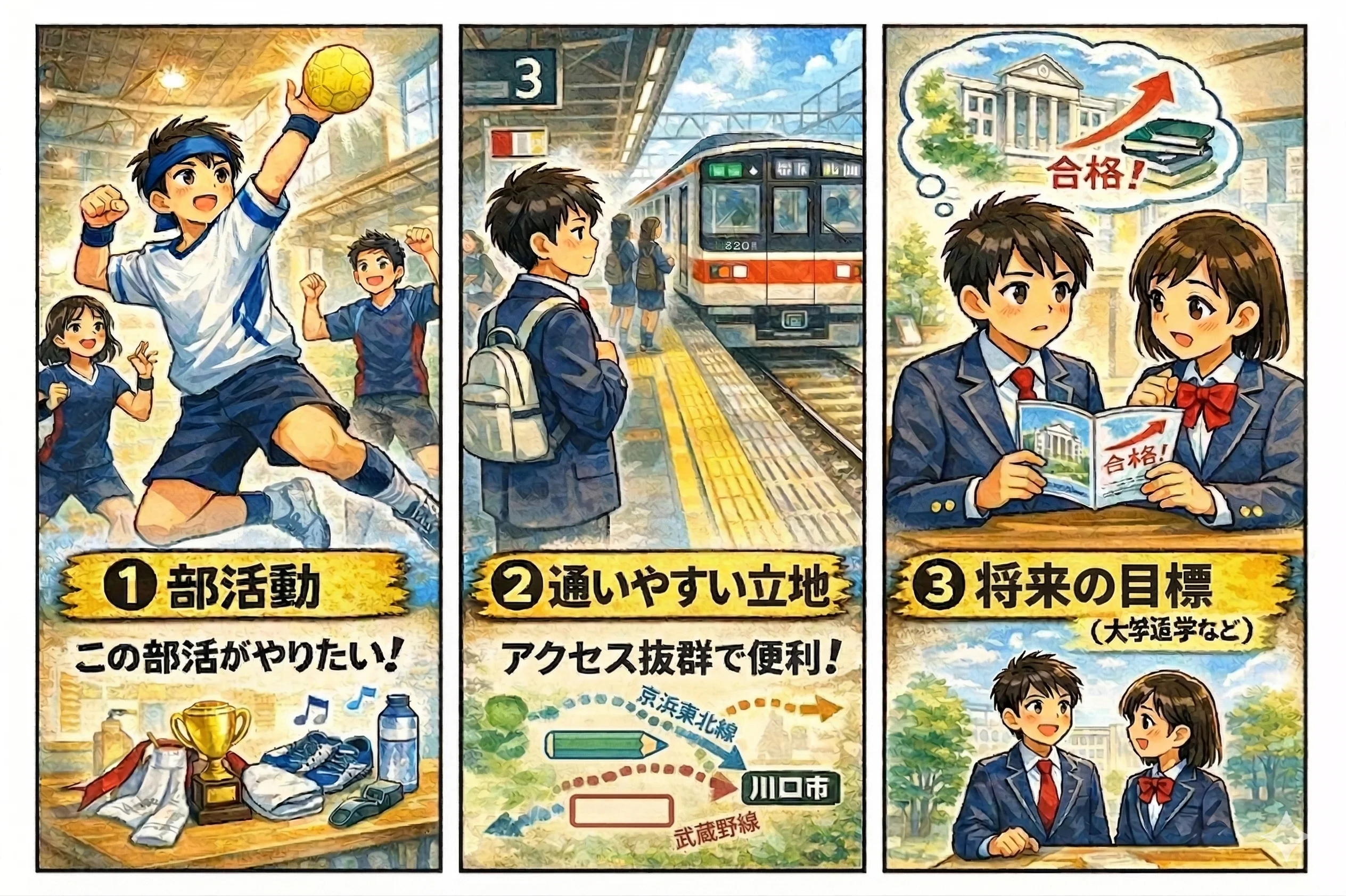 もちろんこれらも大切ですが、生徒たちが本音で重視しているのは「部活」「通いやすさ」、そして「校則」など、“これからの3年間をどう過ごすか”に直結するポイントです。