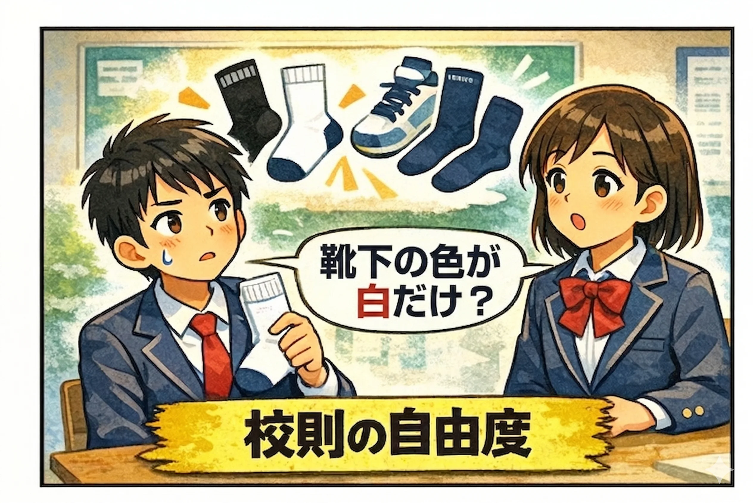 先日、ある生徒さんが「靴下が白以外のところ」を志望校選びの絶対条件にしていると話してくれました。